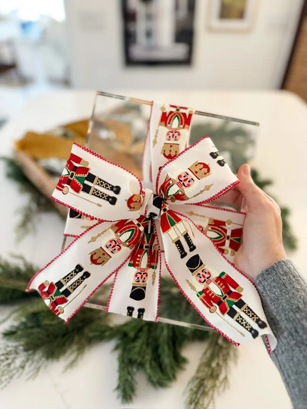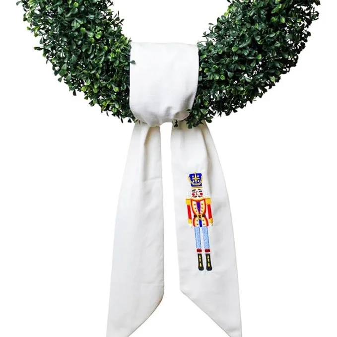 This fun nutcracker wreath sash is a great way to make a faux wreath look more unique and festive. It also made my list of gifts for the holiday hostess.
