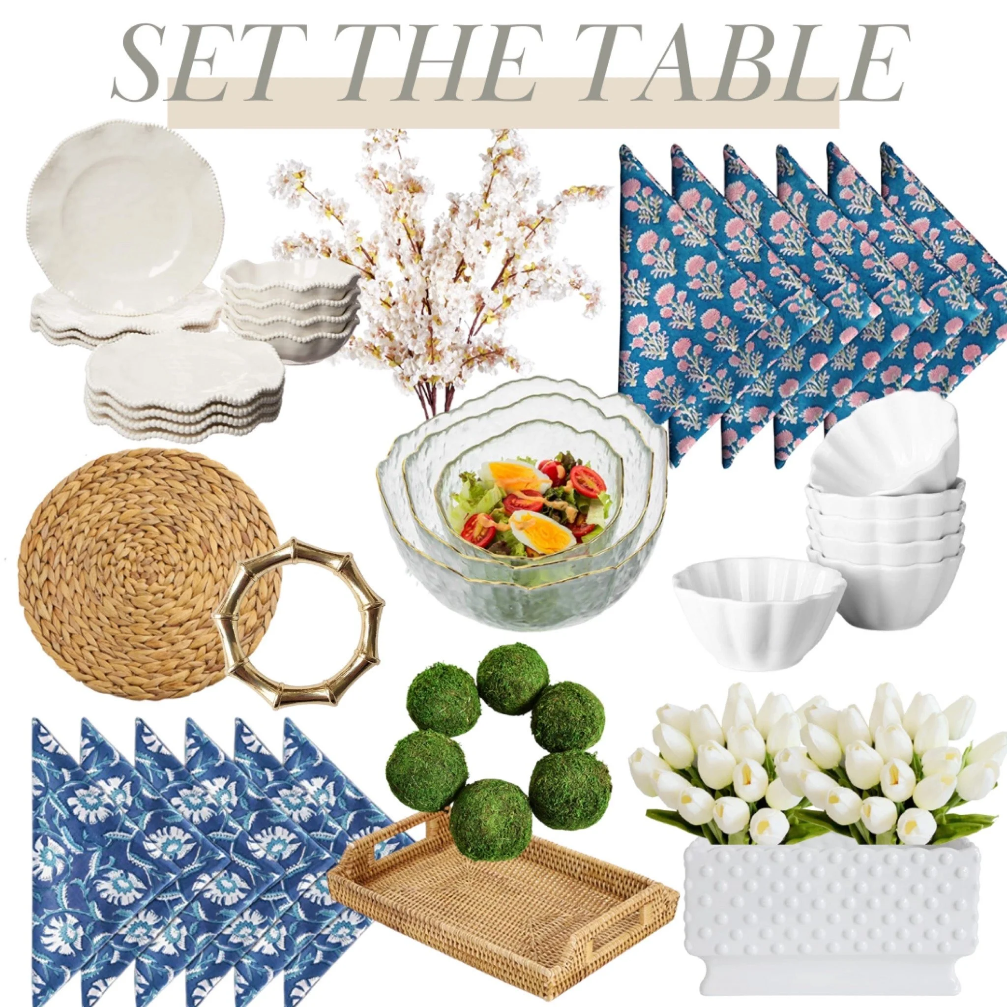 Here are a few of my Springtime essentials. Many of these items can be used in other areas of your home like the faux cherry blossom stems, moss balls, artificial tulips and rattan tray, but all of these can be used to create an Easter table display that you and your guests will love. The serveware and several other items in this mix can also be kept out all year which is a win in my book—I am all about purchasing items that can be used season after season.