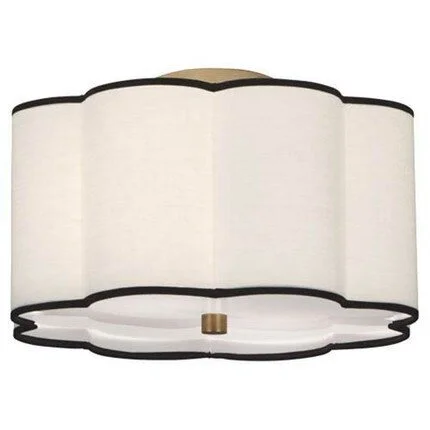 Taking after the Arts & Crafts movement with a modern edge, this substantial three-bulb flush-mount ceiling light showcases a cream-colored drum shade.