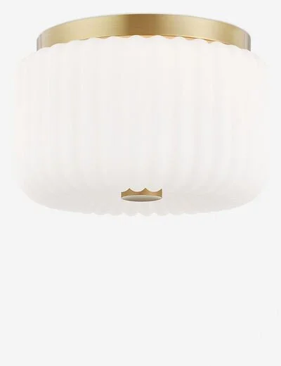 This modern flush mount is all about texture. Its ribbed detail and antiqued brass fixture blends a little bit of retro, traditional, and contemporary style offering both visual appeal and function.