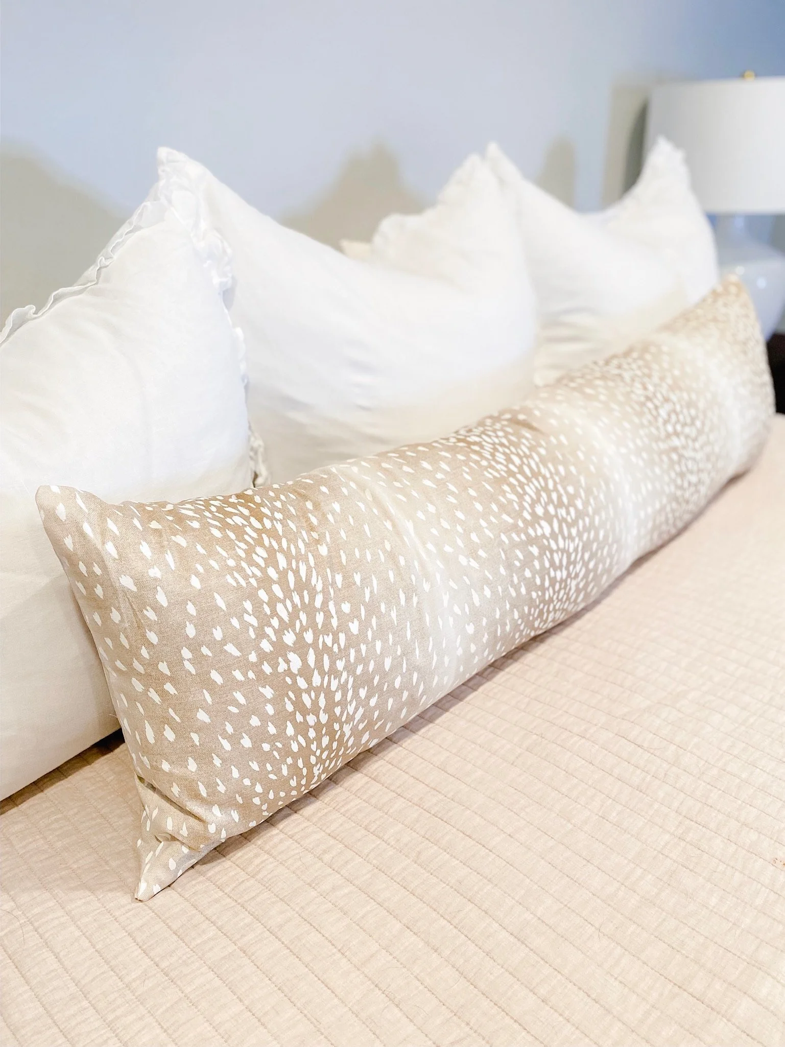People always ask where I purchased this antelope bolster pillow and they are typically pretty surprised when I tell them I made it. I’m no expert pillow maker, but I will humbly say I am impressed with how this turned out. This was an easy project and something I would happily do again—and trust me, I don’t say that about every DIY.