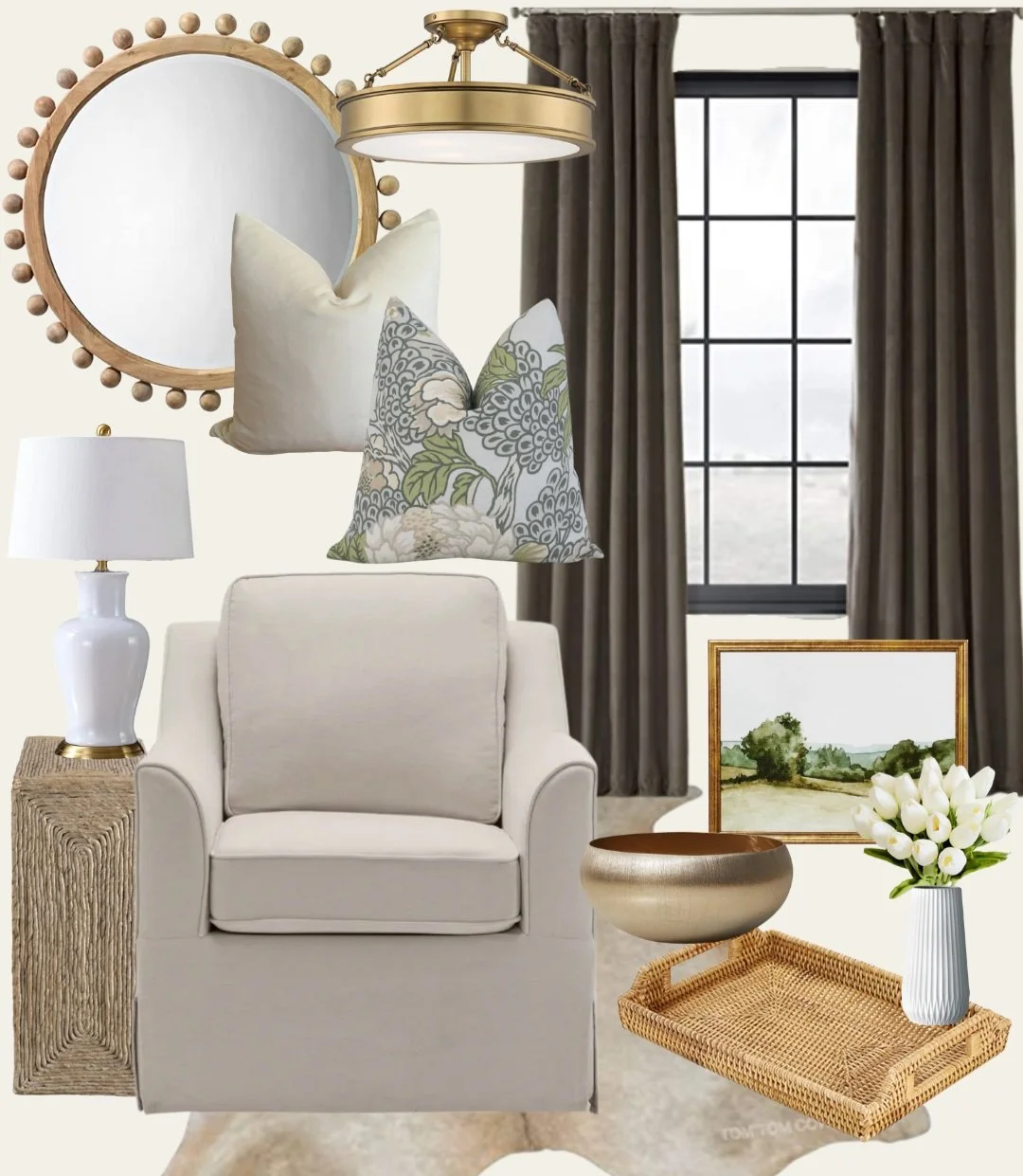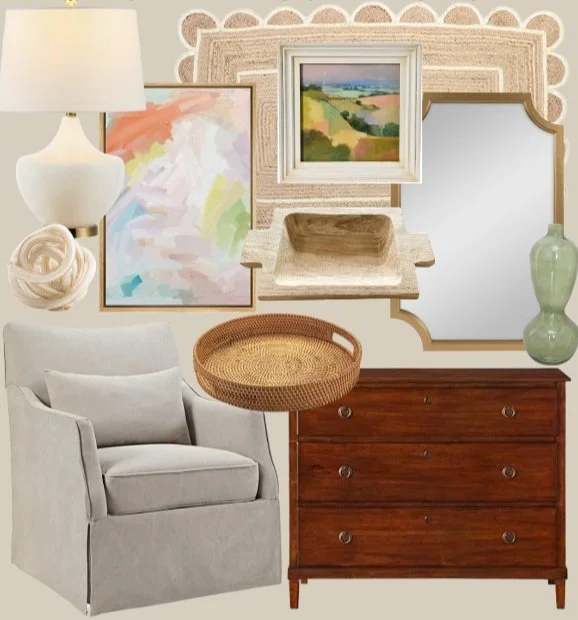 There is nothing like a sunny January day to inspire me to want to redecorate my space! I can’t get away from the cool, coastal tones that feel like a breath of fresh air after the heavy reds and greens of the holiday season. Sometimes, redecorating and refreshing can look like me flipping the rooms in my house or moving a few pieces around. And sometimes, I just like to “window" shop, a new browser window, that is. I usually start with one piece, like the chair pictured below, and my mind opens up from there! I envision all the possibilities around it. I find it super helpful to mood-board my rooms before purchasing anything. Even just putting pieces side by side on a blank screen helps me get a feel of how they all work together. I hope feel inspired by some of my recent window shopping and find some pieces to click and love.