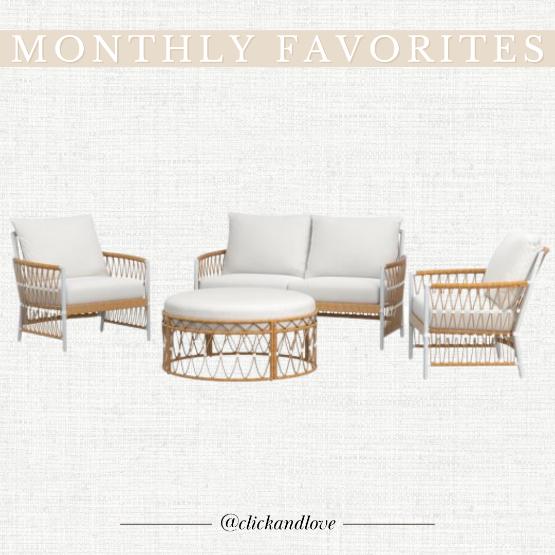 Refresh your patio this summer with this beautiful furniture set. The price can’t be beat. I love the clean lines, soft colors, texture and the boho vibe of this set.